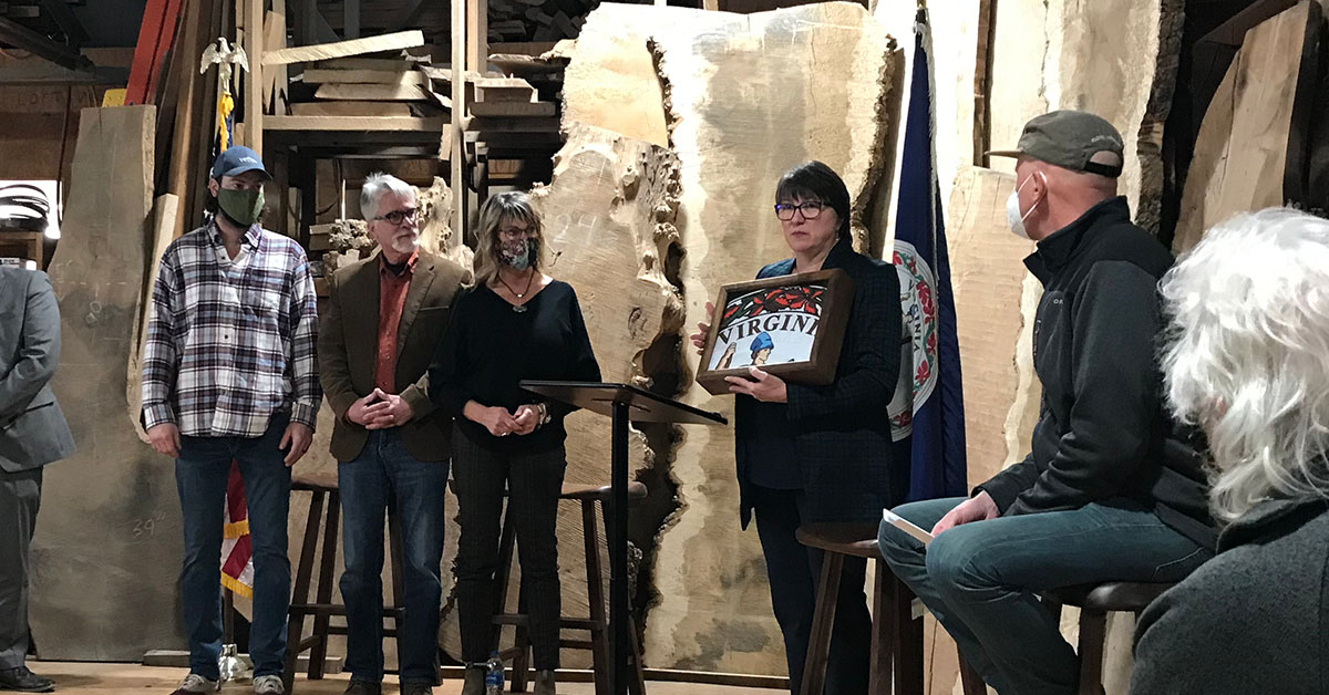 “As someone who grew-up in the Appalachian woodlands of Craig County, Virginia’s hardwood forests have always held a special place in my heart. I am thrilled that we are able to partner with a community like Floyd County to support a company like Phoenix Hardwoods as both appreciate Virginia’s hardwood resources as much as I do,” said Secretary of Agriculture and Forestry Bettina Ring. “As it is through a deep appreciation of our forests and the beautiful products that come from them, like those created by the artisans of Phoenix Hardwoods, that we are able to grow markets for Virginia’s forest landowners and support sustainable forest management and restoration of our forests.”