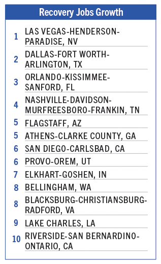 The region secured the #8 spot on the list with a strong showing in the “Recovery Metro Areas” category. The ranking comes by way of the largest percentage gain in total employment from May 2021 to May 2022 based on U.S. Bureau of Labor and Statistics data.